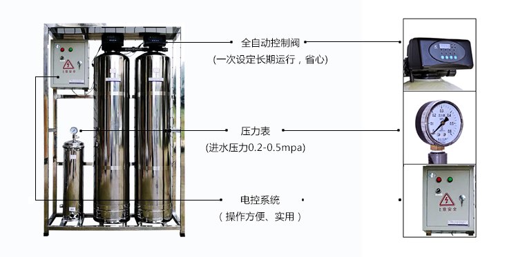 1、了解需求:定制設備需詳細了解用戶用水需求(日用水多少噸,每小時用水多少噸,有無用水高峰期,需要達到的效果等)、原水情況(原水硬度、自來水或是地下水、水質情況)!